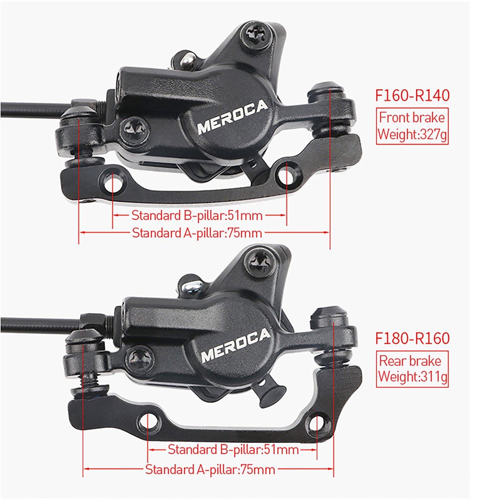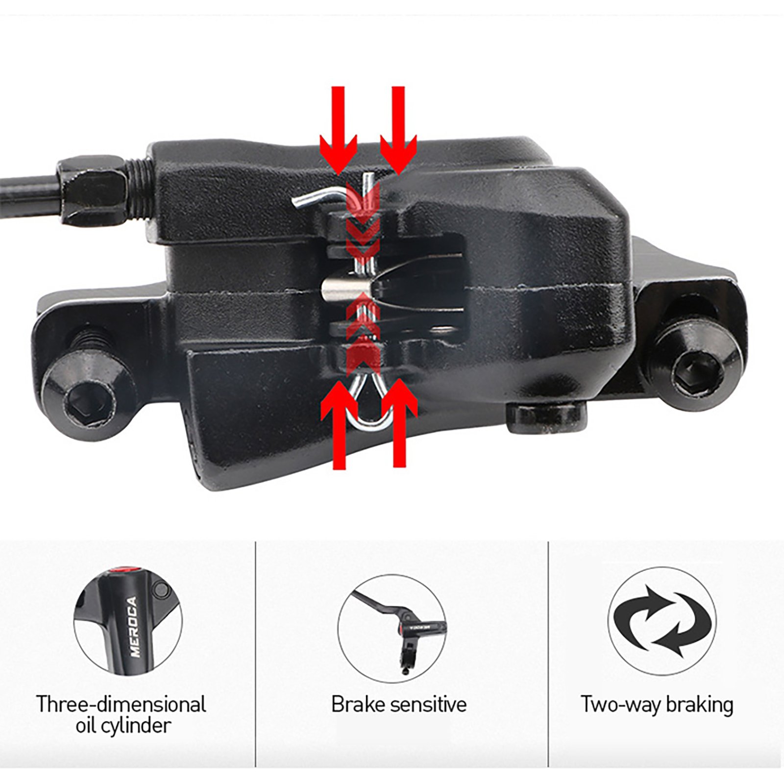 Dual-piston mountain bike bilateral hydraulic disc brakes, compared with the same level of double-piston brakes, the braking force is increased by 20%, and the wear resistance is increased by 150%.