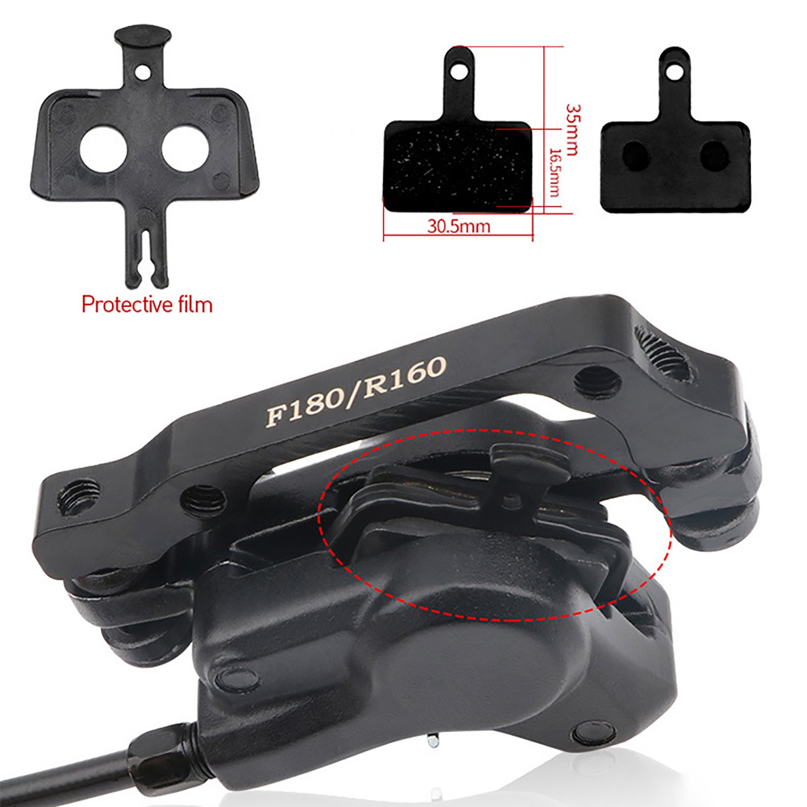 Double-piston drive, both left, and right sides are braked at the same time, the braking effect is doubled, and the disc has a good braking effect and stability.