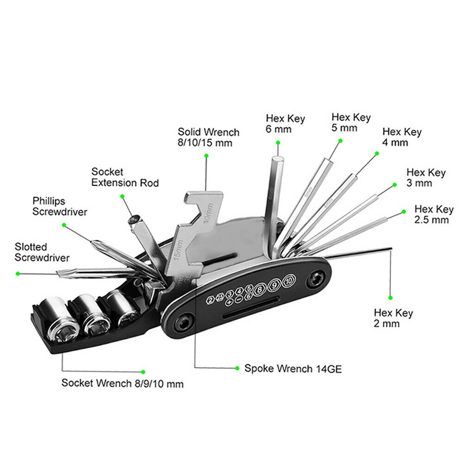 1 x 16 in 1 Multi-function Bicycle Tools