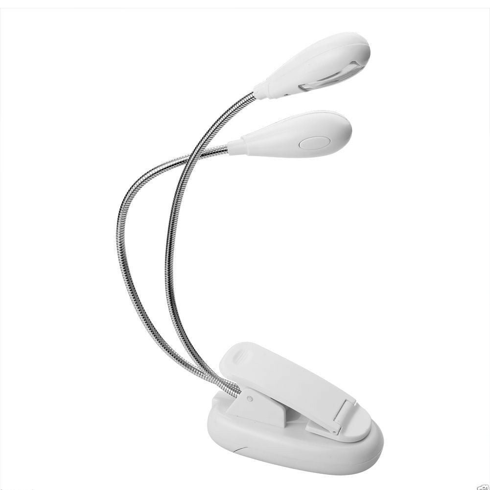 White 2 Dual Flexible Arms 4 LED Clip-on Light Lamp for Piano Music Stand Book