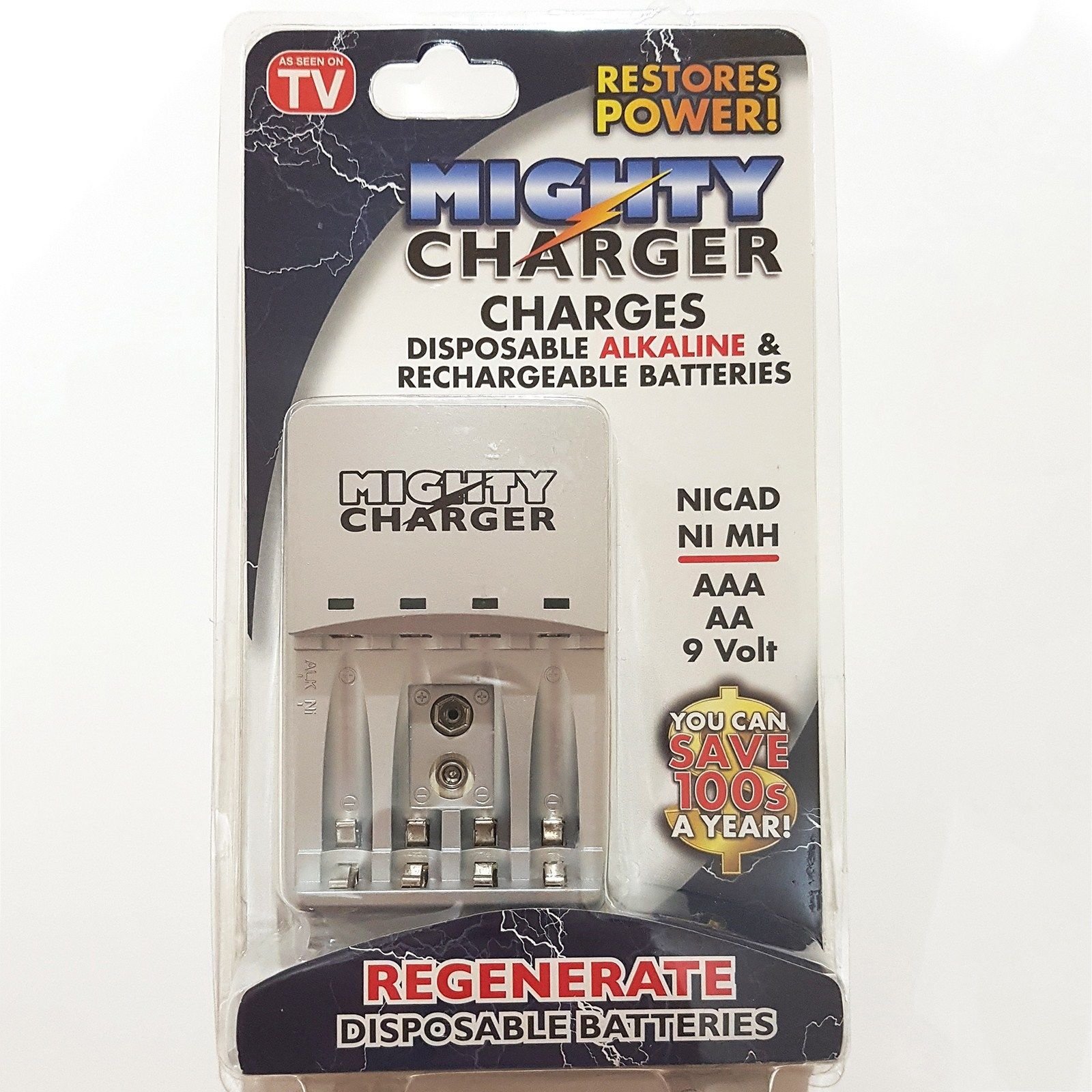 MIGHTY CHARGER for Disposable Alkaline & Rechargeable Battery AAA AA 9V NI MH